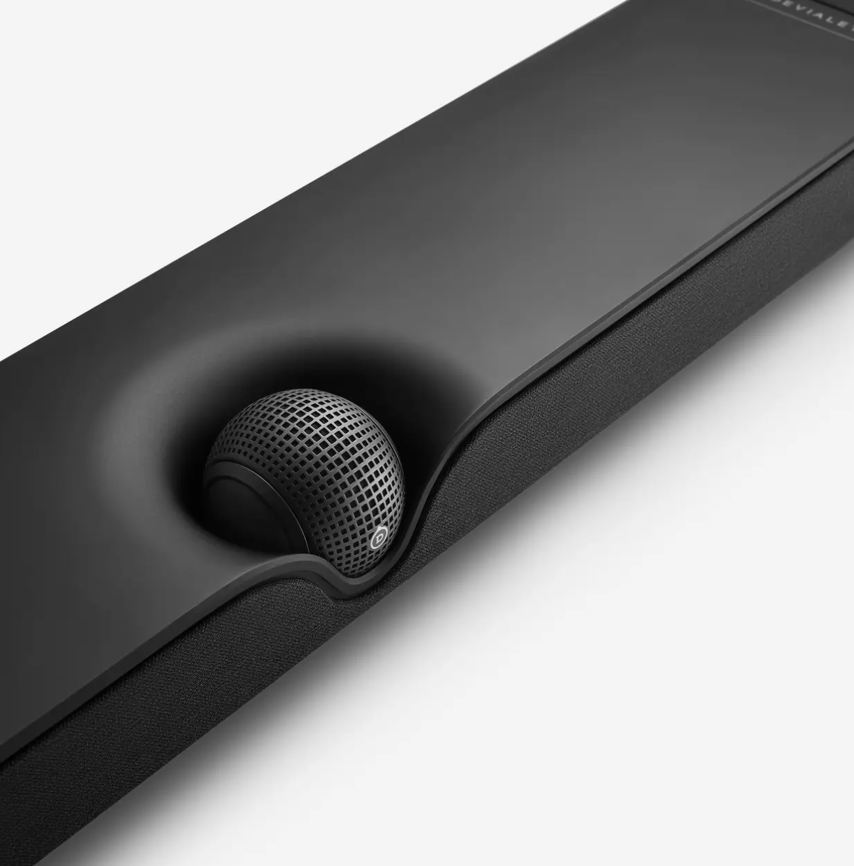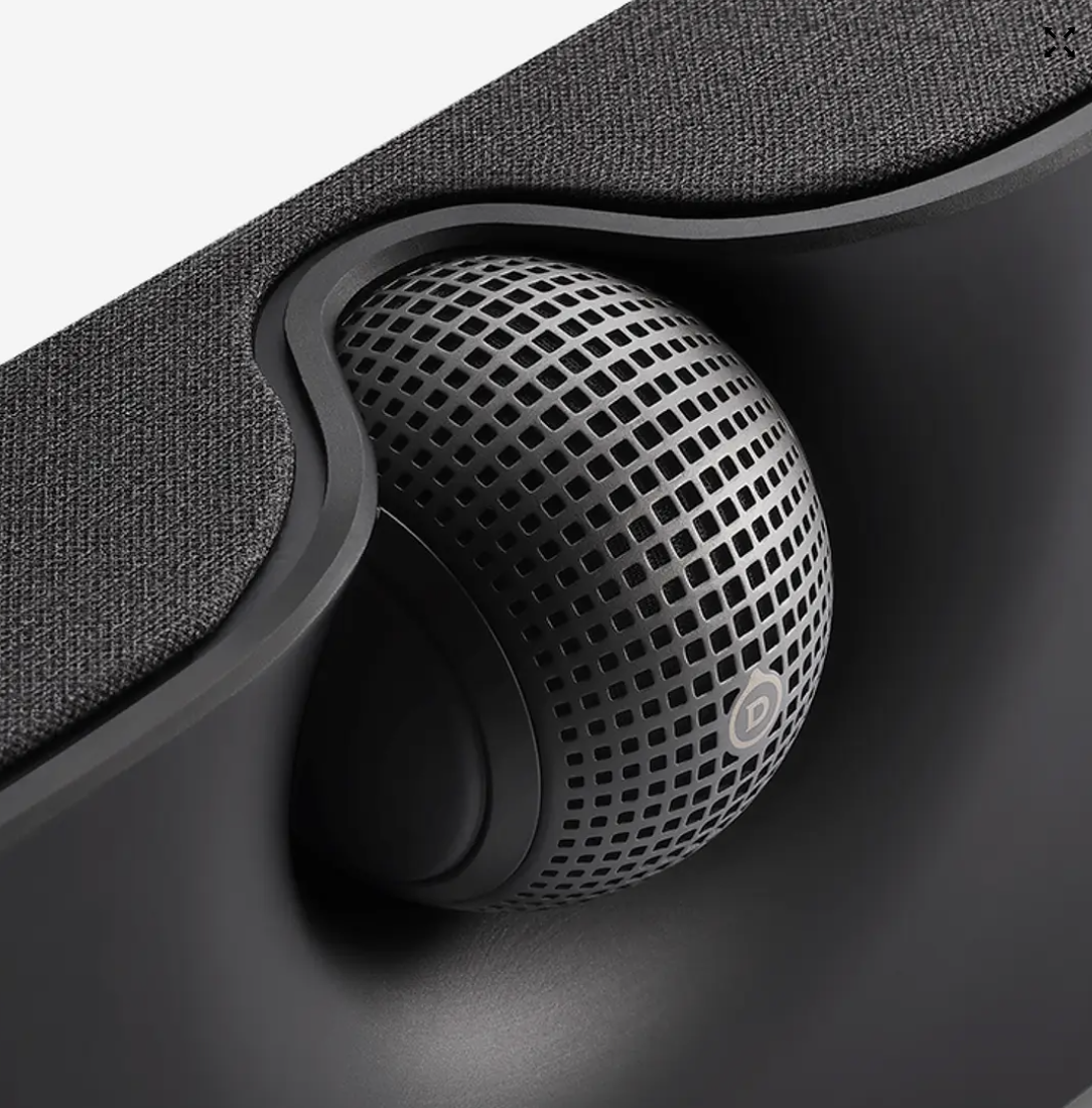 De Dione, met Devialet Intelligent Processor skills, een bandwith van 30Hz tot 21kHz en 950 Watt aan vermogen voor een impact van 101 dB is eigenlijk gewoon een Phantom in het jasje van een soundbar. Maar dan voorzien van room calibration scan om de weergave aan te passen aan de ruimte, flexibele plaatsing (horizontaal wegleggen of verticaal ophangen), en de ORB central speaker (dat fraaie golfballetje in het midden inderdaad) – die voorzien is van één actieve en twee passieve drivers en flexibel te draaien is voor de juiste positionering (afhankelijk van horizontale of verticale plaatsing van de Dione).